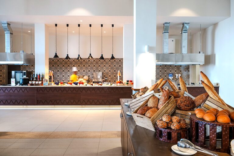 Celodenný medzinárodný buffet s live cooking stanicami.